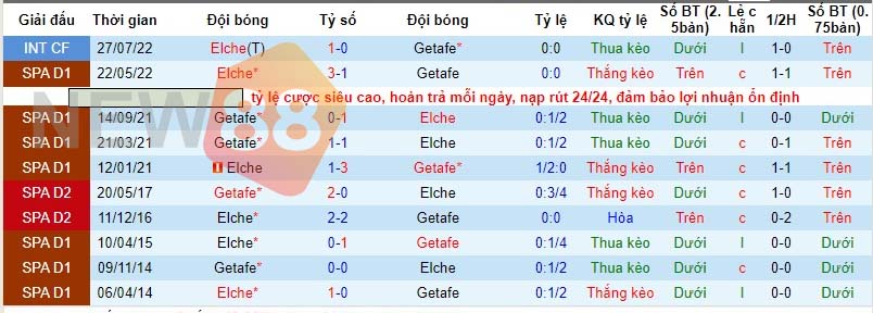 Xét về kết quả kèo châu Á gần đây, dù hòa 3 trận gần nhất nhưng với tư cách là người chấp kèo, Getafe đang có mạch toàn thắng. Elche đang là đội có tỷ lệ thắng kèo châu Á thấp nhất mùa giải, với vỏn vẹn 2 chiến thắng sau 11 vòng đấu. Do đó, lựa chọn Getafe ở trận này là thích hợp hơn cả.