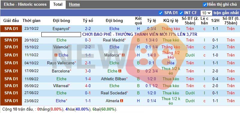 10 trận đấu gần đây, Elche chưa biết mùi chiến thắng.
