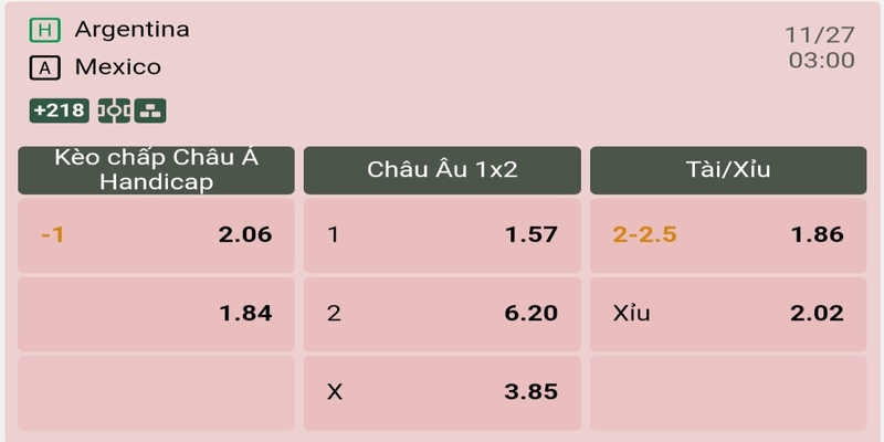 Soi kèo Châu Á trận đấu giữa Argentina vs Mexico