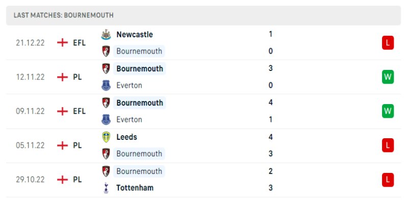 Trong khi đó, Bournemouth cũng chẳng khá khẩm gì, thậm chí còn tệ hơn khi có tới 4 trận thua, 1 trận thắng. Điểm tựa duy nhất của họ vào lúc này chính là vừa đánh bại Everton với tỷ số 3-0 tại vòng 15 trước khi Ngoại Hạng Anh tạm nghỉ cho World Cup.