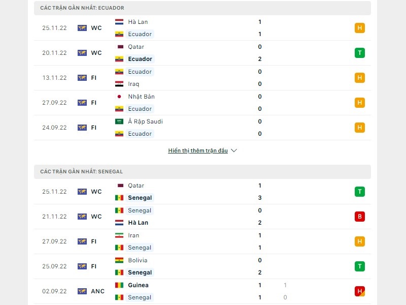 Phong độ trước trận đấu giữa Ecuador vs Senegal