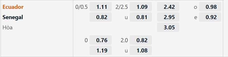 Soi kèo Tài Xỉu Ecuador vs Senegal