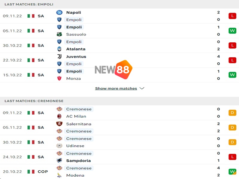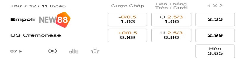 Empoli vs Cremonese là một cặp đấu mang nhiều duyên nợ trong quá khứ. Cả hai đội bóng có được thành tích đối đầu rất ngang bằng nhau và phong độ trước thềm cuộc đọ sức lần này cũng rất cân kèo. Đây sẽ là một trận so tài vô cùng hấp dẫn của bóng đá Ý vào cuối tuần. Cùng tham khảo nhanh những nhận định từ chuyên gia New88 về kèo đấu Serie A này nhé.