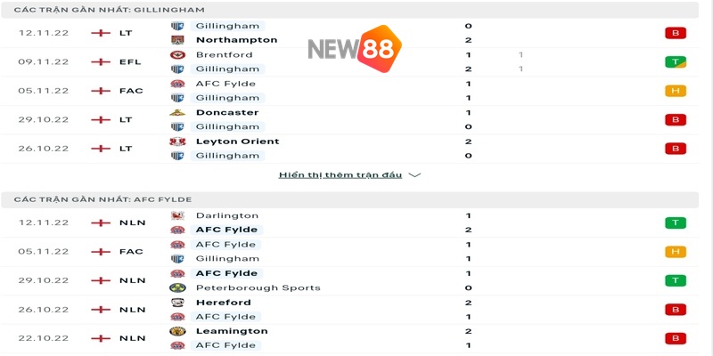 Phong độ của Gillingham vs AFC Fylde trước trận đấu