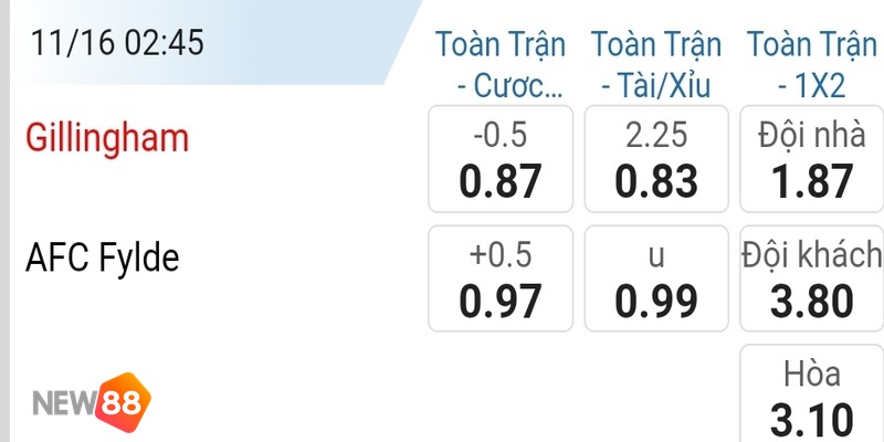 Soi kèo Tài Xỉu trận đấu giữa Gillingham vs AFC Fylde
