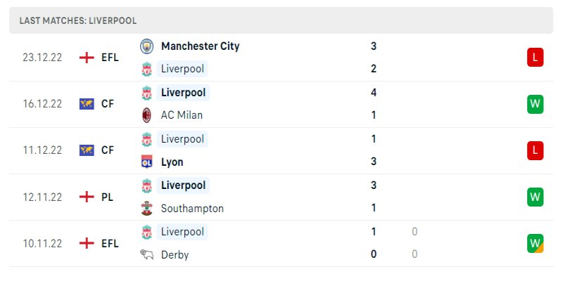Phong độ trước trận đấu giữa Liverpool Vs Leicester City