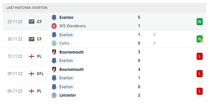 Theo thống kê thành tích đối đầu giữa 2 đội cho thấy, Everton chỉ ghi được vỏn vẹn 2 bàn thắng ở 5 trận gần nhất. Trong khi đó, Man City thể hiện rõ sự vượt trội, áp đảo của mình ghi nã vào lưỡi đối phương tới 16 bàn thắng.