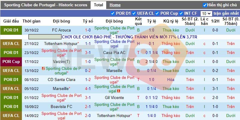 Phong độ chủ nhà Sporting CP